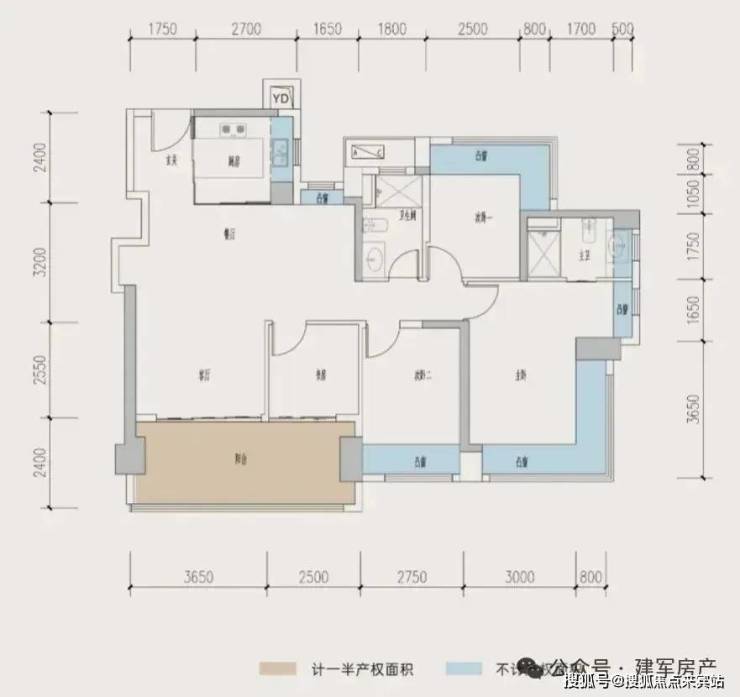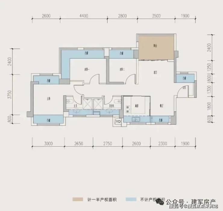 126㎡的4房2厅2卫,设计的是经典竖厅格局,进门入户玄关,客厅3.65米开间,LDKB一体化,S墙设计预留冰箱卡槽位,四开间朝南,动静分区,主卧+1个次卧270度大飘窗,客厅连接次卧出6.15米长大阳台,U型厨房,卫生间干湿分离,得房率约:77.4%(不含赠送),东南朝向。套内面积97.76㎡+赠送面积21.54㎡+实得119.3㎡,加上赠送得房率94.44%。
