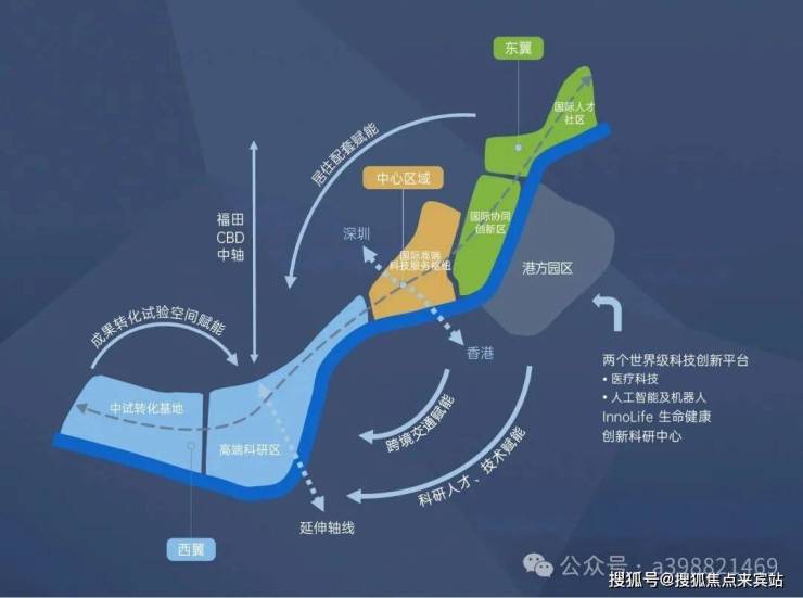 ▫深圳园区功能分区:国际高端科技服务枢纽、高端科研区、中试转化基地、国际协同创新区、国际人才社区