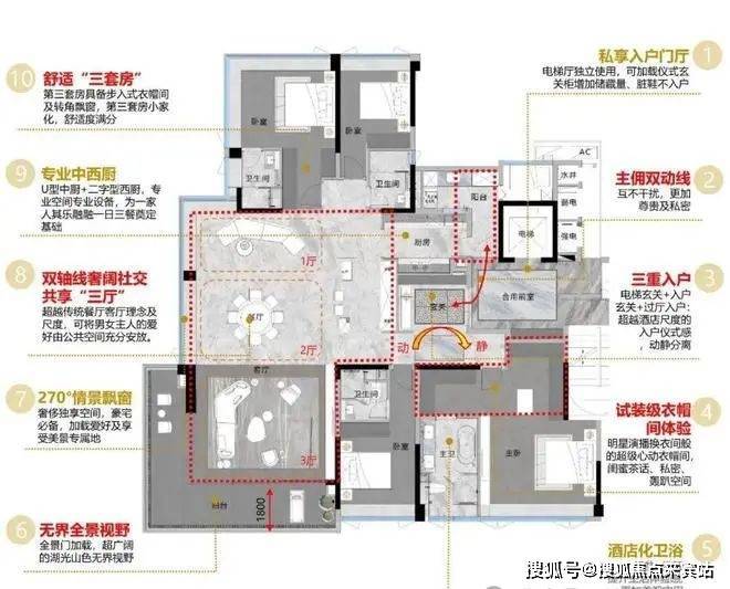越秀观樾建面约190平的四房户型设计,确实展现了其卓越的品质和出色的居住体验,每一项细节都彰显着广州“天花板水平”的居住标准。