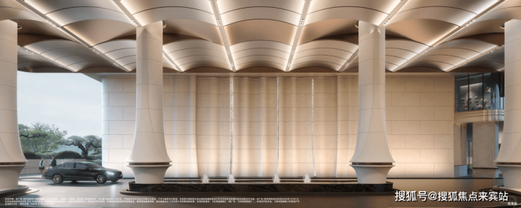 建筑立面从海风吹拂的波浪中汲取灵感,提炼出双反弧形立面元素,应用于阳台、檐口与窗线等设计,形成富有韵律的 “海风百褶” 肌理。玻璃幕墙搭配金属线条的构成和组合,既保证了室内采光与隔音效果,又在不同光线下呈现出灵动的光影变化,让建筑如同漂浮在城市上空的 “流动艺术品”。