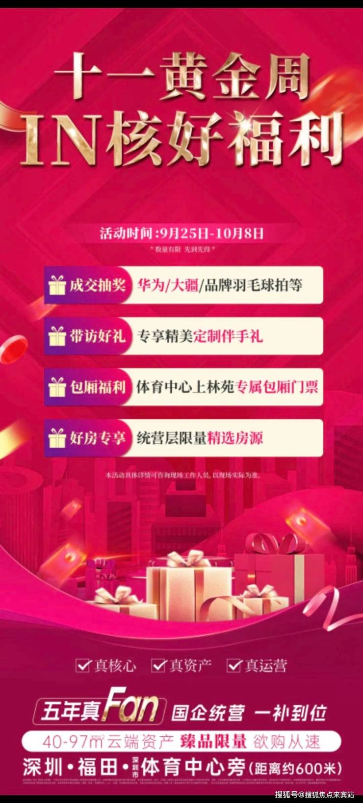 据了解,深业上林苑在国庆期间有四重好礼,具体详情可到项目营销中心咨询。(图源:深业上林苑)