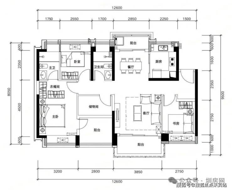 89㎡四房两厅两卫,同等面积多一间房,二孩家庭也能三代同堂。