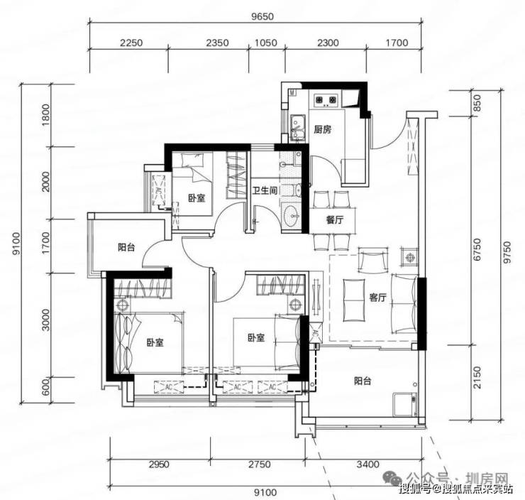 81㎡三房两厅两卫,空间利用极致,功能齐全。