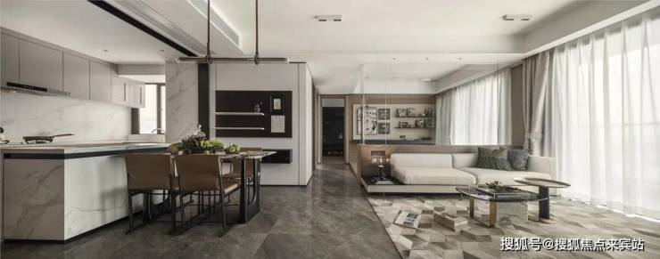 建筑外立面采用浅灰铝板+玻璃幕墙,主打现代简约风格,楼栋点状围合布局,既保障多数单元南向观江,又预留充足中央园林空间。项目容积率低于横沥岛尖同类地块,楼间距宽松,低区住户采光不易受遮挡,居住舒适度拉满。