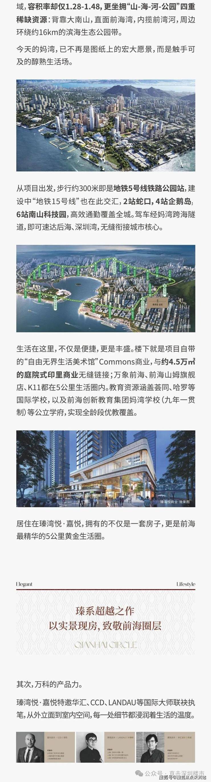 ①双地铁交汇: 距5号线及15号线 (建设中) 铁路公园站仅约300m,1站蛇口、4站企鹅岛、5站南山科技园,通勤无忧;