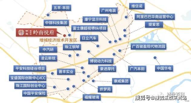 位于广州增城区创盈路与新耀北路交界处;广州地铁23号线永宁站附近(距离项目约1.4km,规划中);片区三大千亿产业集群(富士康、广汽本田、平安科技硅谷),承接湾区红利抢占广州东进桥头堡,承接大湾区发展红利。