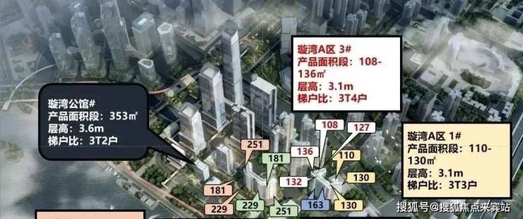 广州滨江上都一期住宅,被命名为璇湾,分为璇湾A区、璇湾B区、璇湾壹号。目前主推A区,B区和壹号,面积段为110—251平的3至5房,其中,130平以上的4房户型才能看到江景。