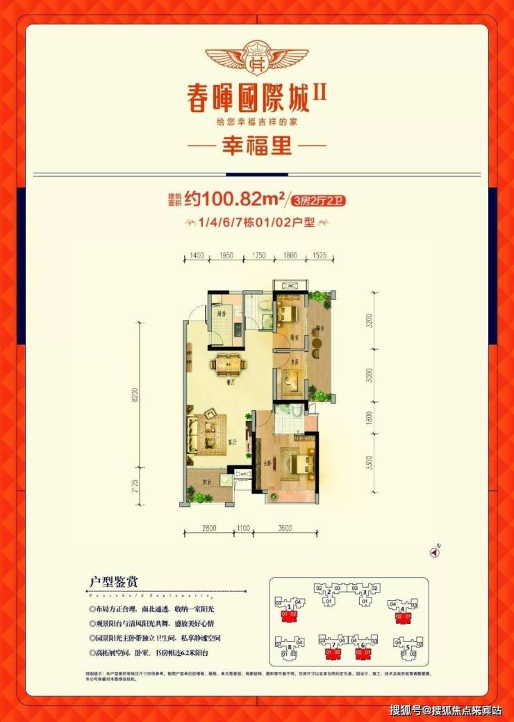 户型优势:稀缺81㎡三房户型、方正且南北通透;独有赠送达3.34㎡;景观主阳台长3.3米,非常宽敞。