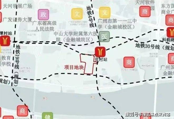 交通配套方面,地块位于规划花城大道南侧,周边紧邻华南快速干线、黄埔大道中、临江大道及科韵路等主要交通干道,交通四通八达。特别值得一提的是,该地块东北侧距离地铁5号线与11号线交汇的员村站仅150米,极大地提升了出行便捷性。
