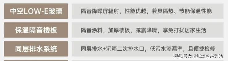 精益求精,高标准打造中空LOW- E玻璃、保温隔音楼板、同层排水系统、6S安防系统等,减少生活困扰,精工品质筑家,致敬美好生活!