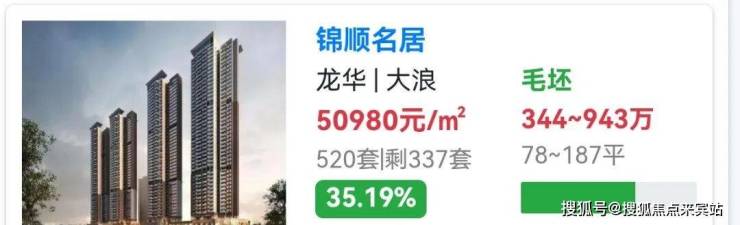 龙华大浪,锦顺名居于2021年7月6日取证入市,推出2栋B/C/D座,共520套房源,面积78-81㎡的3房1卫,90㎡的3房2卫,106-123-129㎡的4房2卫户型,备案均价5.39万/㎡,备案单价4.78-5.87万/㎡,总价416-945万/套,毛坯现房。