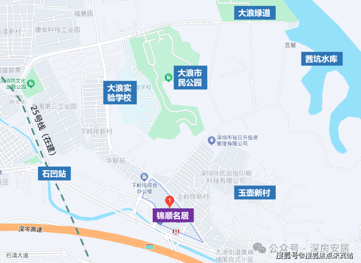项目所处的区域实际上是商品房市场的新兴发展区域,大家对该片区的认知度普遍不高。该区域在龙华大浪的北部,受沈海高速的影响,与大浪、龙华等核心腹地形成明显的区域发展界线,受割裂影响较大。基建、配套、城建等综合发展水平普遍较低,工业厂房、民房、老屋村等地块功能混杂,无论从观感还是宜居角度而言,都有较大的改善空间,未来临近25号地铁线“石凹站”。