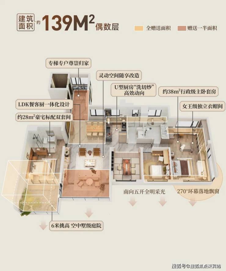 更值得一提的是,在偶数层,长辈套房直连南向约6米挑空庭院:
