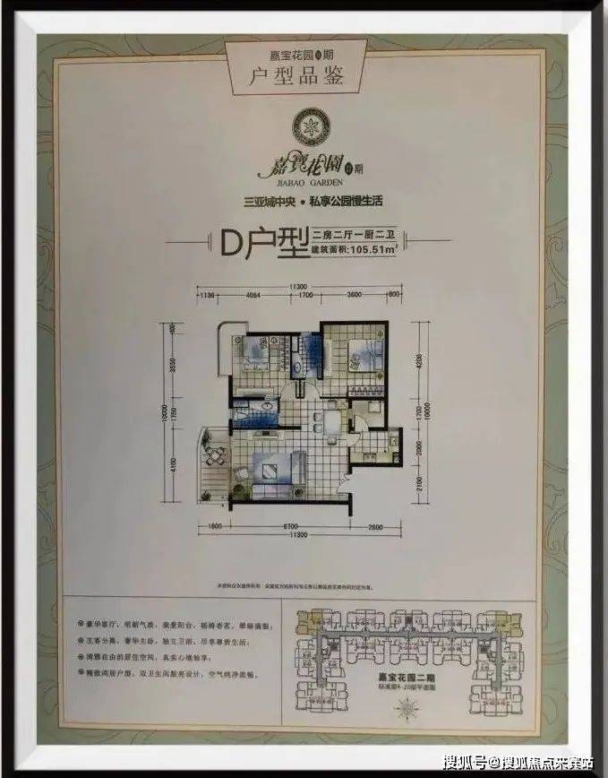 二房户型:面积段主要在 88 平 - 106 平之间,如 88.19 平的两房两厅一卫可看白鹭公园、大树公馆、三亚湾海景、凤凰岛;105.51 平的舒适大两房两厅两卫属于五明设计边户2。