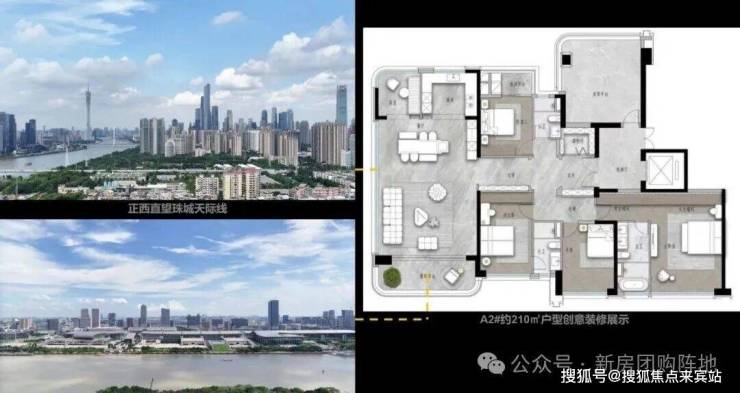 建面约210㎡户型,总价约2400-3000万,广州2400万级唯一巨幕江景大平层。