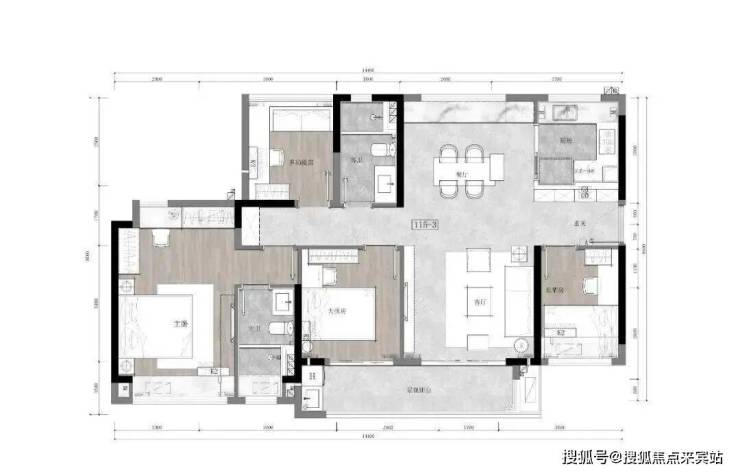 115㎡户型:奢阔的主卧套房设计、约6.2米南向极致景观阳台、全阳光全龄优享空间,均能在天樾115㎡的产品中得到体现。功能分区清晰,动静和干湿分离有序,老人房-双面宽阳台-客厅的洄游动线使养老服务流线变得便捷高效,在品质优居的基础上,进一步升级居者的全方位体验。