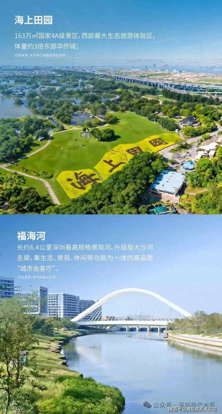 卓越前海未来城,位于深圳市宝安区沙井街道,地处前海2.0扩容区会展海洋城板块,紧邻地铁12号线海上田园东站,是大湾区“黄金内湾”几何中心。项目依托前海8倍扩容政策红利(总面积达120.56平方公里),占据会展经济、海洋经济、文旅经济三大千亿级产业规划核心区位,同时被海上田园国家4A级景区(163万㎡)与福海河生态长廊环抱,兼具发展潜力与生态宜居属性。