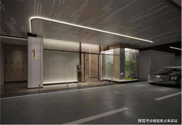 约9米高爱马仕灰高端石材社区大门,搭配大面积通透玻璃及中轴铝合金造型,尽显简奢时尚的格调;超高酒店式入户大堂,堂皇而细节考究,予业主一场尊崇的归家仪式。