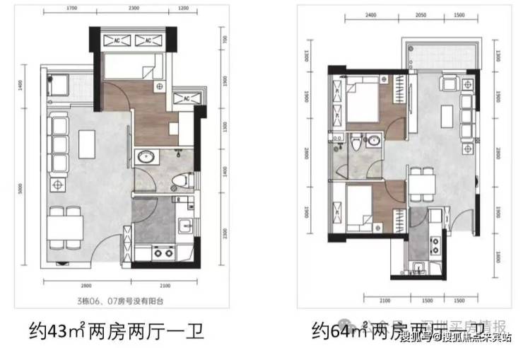 【约43㎡两房一厅】户型图及视频