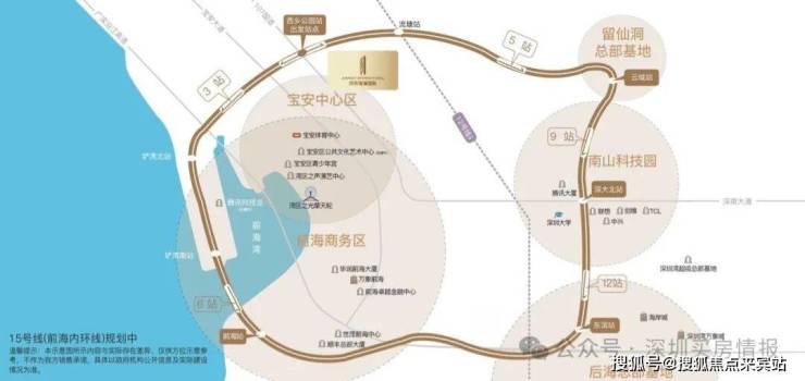 【前海内环加持 连接城市未来】地铁15号线(规划中)作为深圳首条环线轨道,起终点均为前海站,作为战略上的“产业线”,极速串联前海、宝中、大铲湾“腾讯科技岛(在建中)”、南山科技园、后海总部基地、留仙洞总部基地等高端产业密集区,推动资金流、人才流、技术流汇聚,构筑“前海内环”经济大动脉。