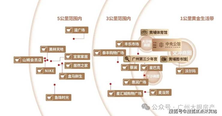 周边有三大成熟商圈环绕,即享惠润广场、沃尔玛等商业配套,5公里范围内就能到三溪美林天地、保利鱼珠时光、山姆会员店、居然之家、M-PARK漫广场等大型商业配套