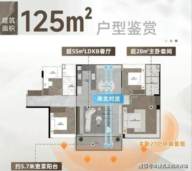 112㎡ 3+1房2厅2卫,+1房多功能空间,两梯四户南向低密度,LDKB一体化设计,全屋80cm阔景飘窗升级。