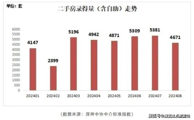 据深房中协统计数据,2024年8月全市二手房录得4671套,环比下降13.2%,同比增长50.0%。