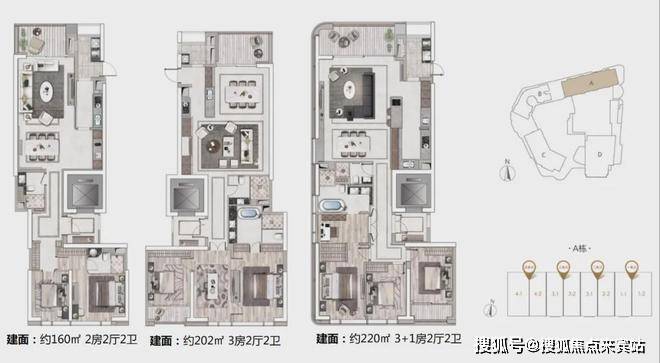A栋产品:160-200-220㎡ 2-3+1房云端美寓
