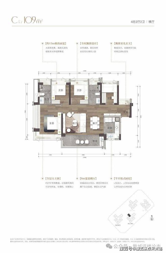 【产品面积】建面约108㎡/109㎡/138㎡~143m²海幕纯四房