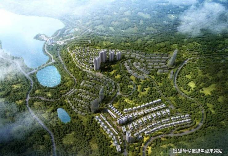 项目三面环山南面临湖,藏风聚气,退台式步步登高而建,“聚宝盆”地形地貌!