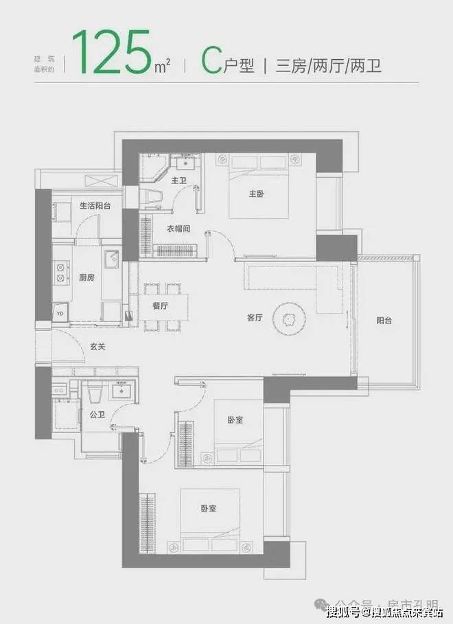 卧室标配飘窗,引入丰沛阳光,全家尽情舒展餐客一体贯通阳台,打造舒适、宽敞的欢聚天地奢享主卧,独享衣帽间、私人卫浴,自我非凡领地