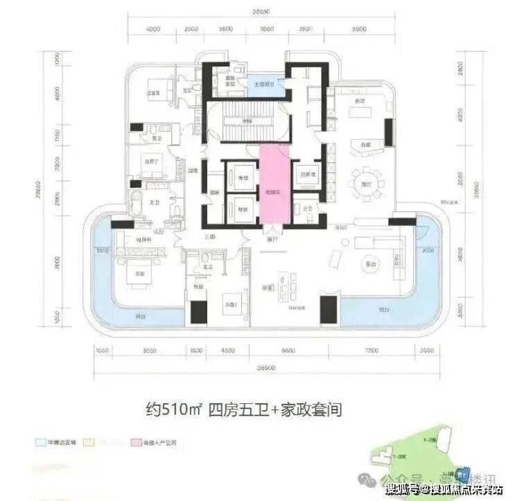 一层一户,纯粹顶豪:整层仅您一户,独享约510㎡的恢弘空间,私密性登峰造极。