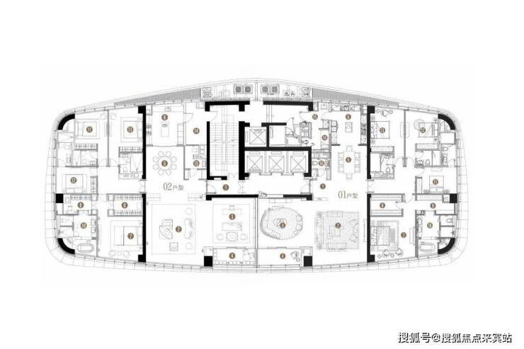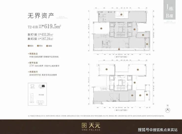 T1栋则是更加奢华的3梯1户(一层只有一户),533-540㎡