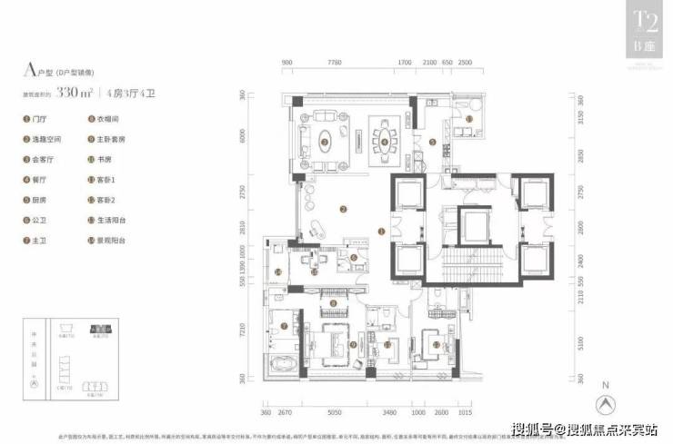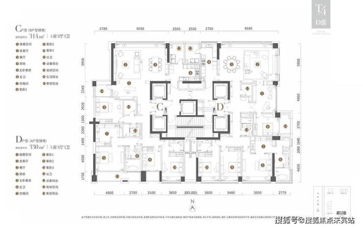 T4栋为314平和330平4房3厅3卫户型