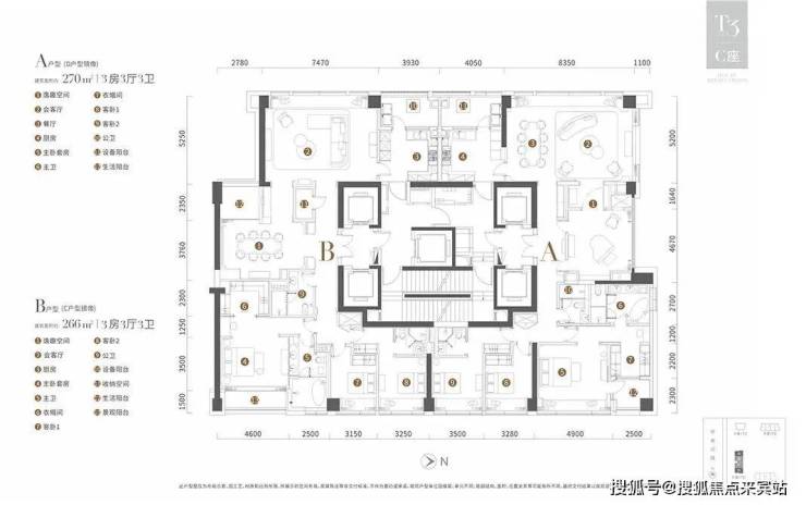 T3栋为266平和270平3房3厅3卫户型