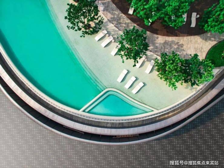 超800㎡半弧形无边际空中泳池,航拍,如见敦煌一抹月牙泉,趣味横生。▽