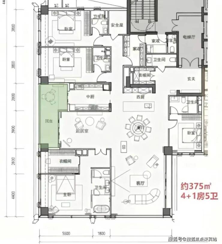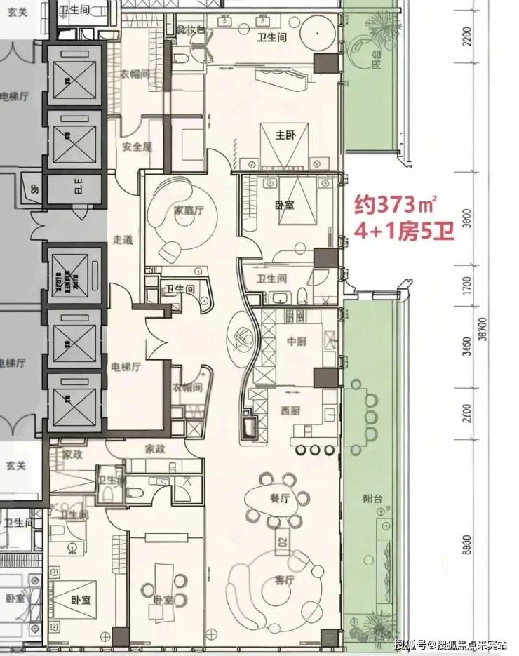 4. 1050㎡左右顶奢大平层(顶楼Penthouse,终极顶豪户型)