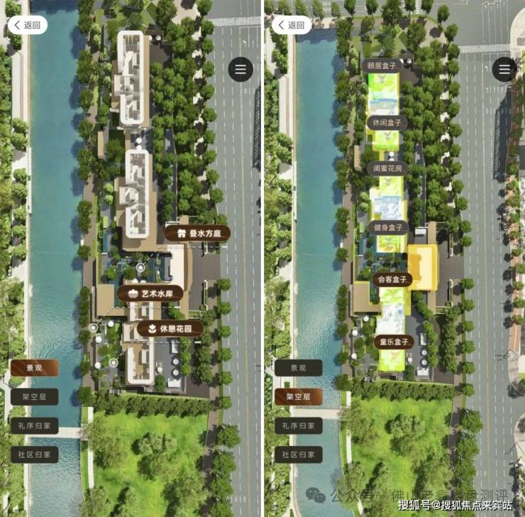 其次,在公区设计打造上,项目地势抬高约3米,打造观景平台,巧妙融入宝华涌一河两岸景观。