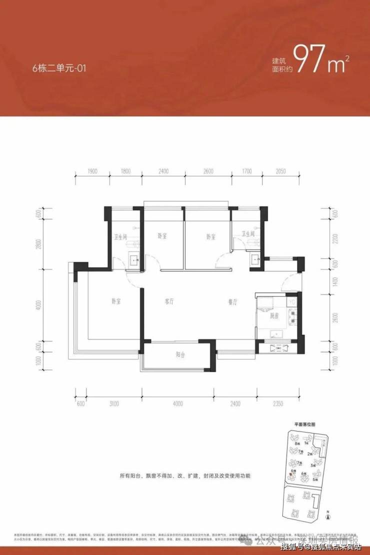 ①户型分析:小面积、低总价,最佳上车首选户型;全南向排布户型,多飘窗的设计,采光通风不错;户型方正,动静分区的设计注重隐私性;明厨明卫,三分离洗手间设计;②朝向:西南、东南向③视野:小区外围,临万丰路,看城市风景,施工建设区域【约85㎡三房两卫】户型分布:分布在7栋2单元、8栋、3栋,共710套,①户型分析:有横厅和竖厅两种户型,全屋7个飘窗、13米采光面,非常通透;预留超多收纳空间主卧双面采光,景观视野更开阔②朝向:东北、西北朝向③视野:社区花园和社区楼栋