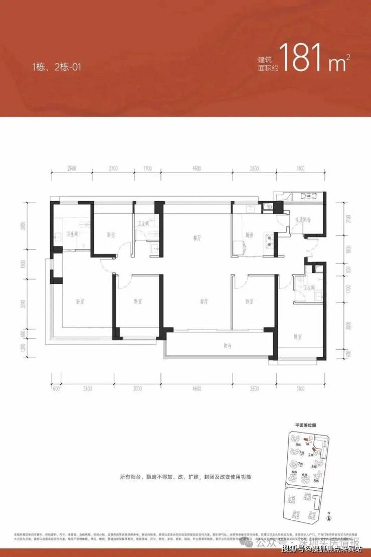 【约105㎡四房两卫】户型分布:分布在7栋2单元、8栋、3栋,共710套,共90套①户型分析:竖厅,改善首选,舒适四房;南向四开间,全景宽角度景观;和市场同类户型相比,总面积更小,实用率及性价比更高;本次的楼王户型,阔绰的双套间设计,层高约3.15米;楼王户型在横厅的基础上,主卧配有L型270度超大飘窗,可俯瞰约3万㎡园林景观;②朝向:东南向③视野:看社区花园社区泳池【约153㎡3房2卫(可改3+2房)】户型分布:分布在1栋2朝南跟西南朝向 共80套【约181㎡5房3卫】户型分布:分布在1栋2朝南北通 共80套