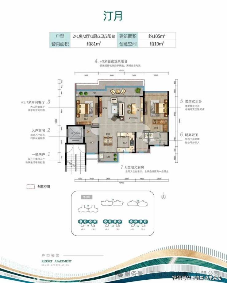 汀月 建面约105㎡户型图及样板间照片