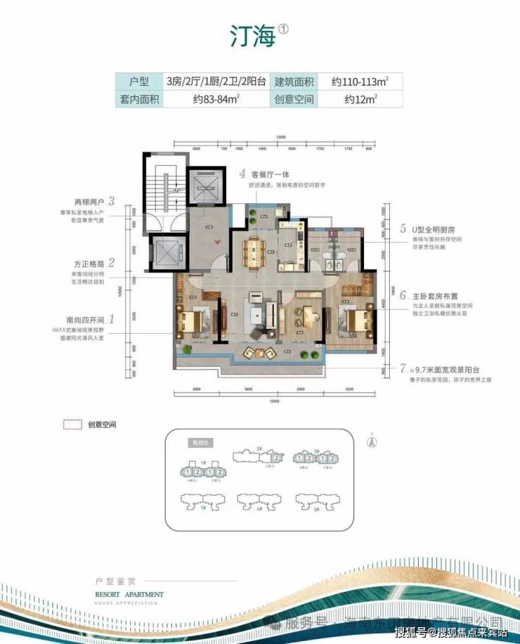汀海建面约110-113㎡户型图及样板间照片