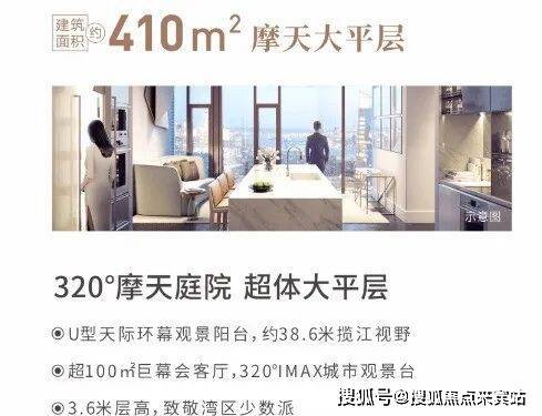 远超现有标准极限的约38.6米U型大阳台,320°摩天庭院、全屋落地窗、约3.6米舒适层高、约120㎡巨幕会客厅等极致的尊崇,刷新城市封面格局。