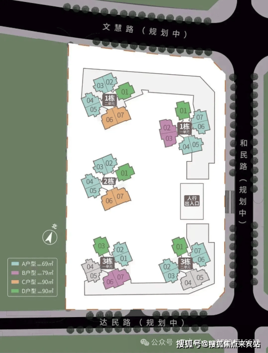 69㎡ 2房2厅1卫:设计有竖厅格局,有多种朝向可选。79㎡的3房2厅1卫,设计的是竖厅格局,有西南,东南朝向;90㎡ 3房2厅2卫:设计有竖厅和横厅两种格局,南北通透。