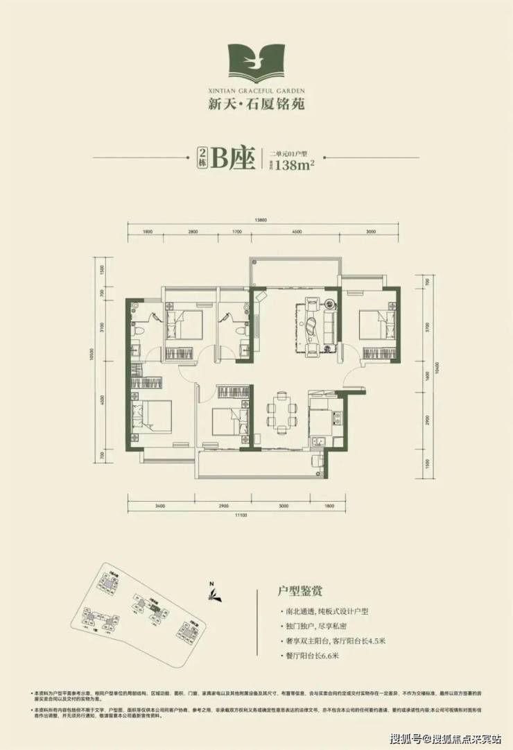 2栋B座一单元01、04户型、2栋B座二单元01户型:面积约为137-138㎡的4房2厅2卫