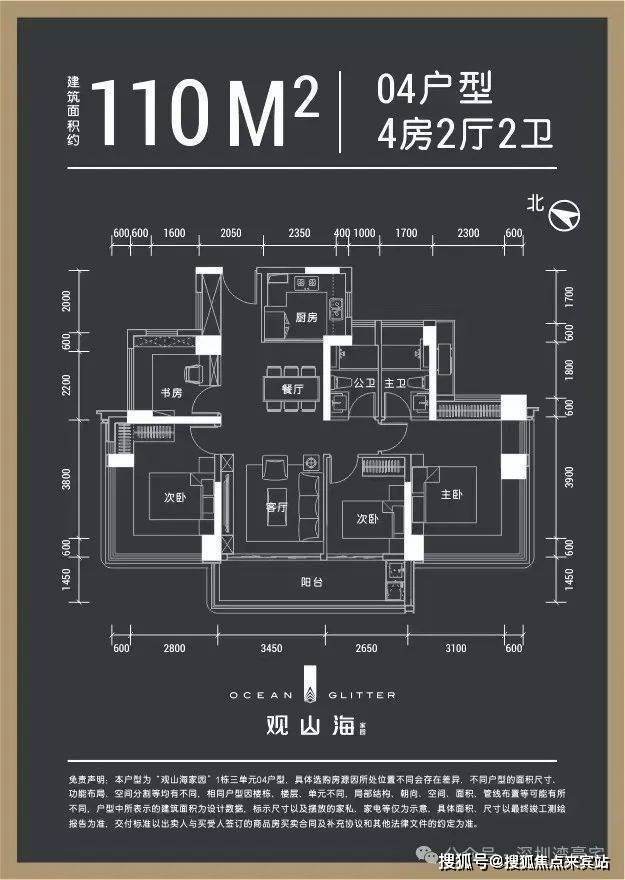 108-110㎡的4房2厅2卫,设计的是竖厅双龙抱珠格局,客厅3.5米开间,LDKB一体化,4个卧室分别做到了3.7米/3.4米/2.8米/2.6米的宽度,主卧加2个次卧270°全景飘窗,客厅连接次卧出6.1米长的大阳台,U型厨房,得房率约95-97%(包含赠送),西南或东南朝向。