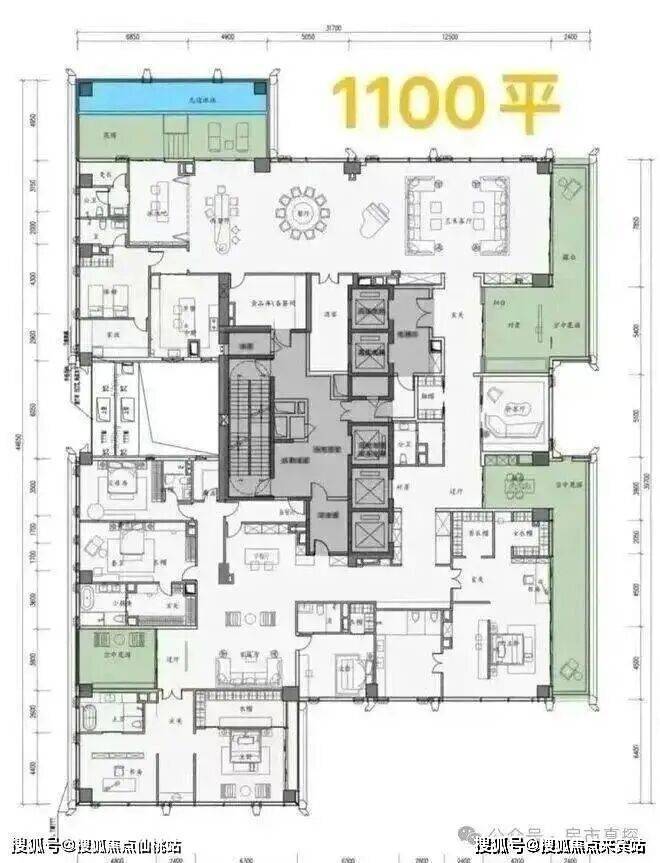 顶楼:约1050㎡整层大平层(仅3套)。