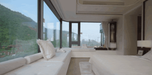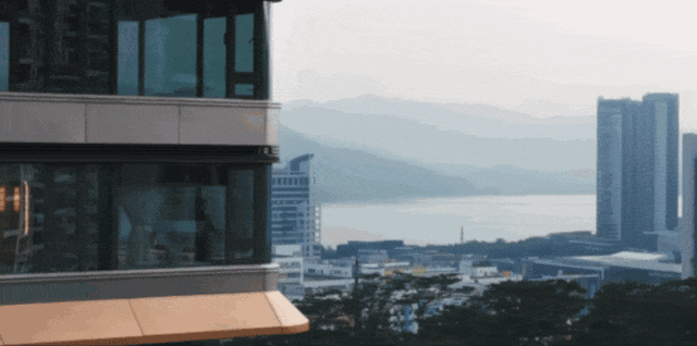 不同于传统户型 “单面窗 + 有限视野” 的设计,全景舱户型的主卧、客厅等核心区域均采用 270° 环幕玻璃设计 —— 以主卧为例,通过建筑体块的精准切割与玻璃幕墙的无缝衔接,实现 “左侧观山、正面瞰海、右侧赏园” 的三重景观体验。清晨,阳光透过环幕玻璃洒进房间,伴随梧桐山的鸟鸣苏醒;傍晚,坐在主卧飘窗上,看沙头角海湾的落日将海面染成金色;夜晚,城市灯火与星空在玻璃幕墙上交织,仿佛置身 “山海之上的观景台”。这种 “沉浸式观景” 体验,让每一次休憩都成为与自然的对话,彻底打破 “景观只是窗外点缀” 的传统认知。