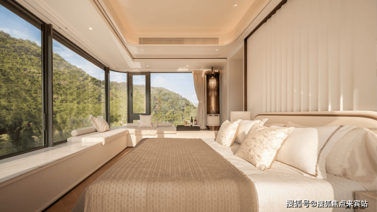 为了让景观与光线最大化进入室内,全景舱户型搭配0.6黄金窗墙比(远超常规住宅 0.3-0.5 的标准)——大面积玻璃幕墙取代传统墙体,不仅让建筑外立面呈现出 “水晶盒子” 般的轻盈质感,更让室内空间实现 “全明通透”:客厅无需依赖灯光,白天也能保持明亮;卧室即使在阴雨天,也能透过玻璃引入柔和的自然光线;就连厨房、卫生间等区域,也通过小尺寸玻璃窗设计,避免“暗厨暗卫” 的压抑。
