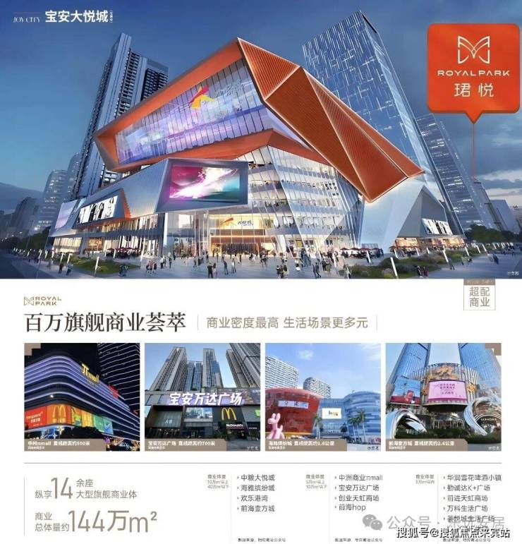 项目自带的商业体量约3.1万㎡,同时紧邻深圳首座中粮大悦城(规划约16万㎡商业MALL,已经开业),形成区域核心商圈。1公里范围内还聚集了中洲πmall(6万㎡)、宝安万达广场(19.8万㎡)、海雅缤纷城(36万㎡)及壹方城(36万㎡)等大型商业综合体,覆盖零售、餐饮、娱乐等多业态需求。此外,项目周边社区底商丰富,步行范围内可满足日常生活采买需求。
